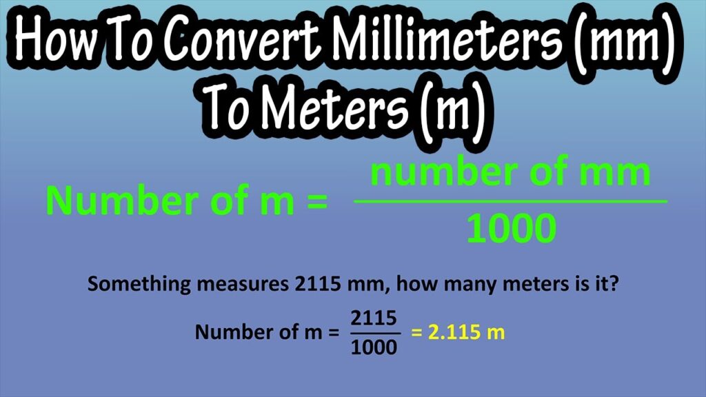 What’s the mm to m formula?m = mm ÷ 1000. It’s exact by SI definition.